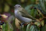 Easingtons very own Red-eyed Vireo was still present and correct up until at least early afternoon yesterday. Still favouring its berry laden bush, it showed then disappeared four times in the one and a quarter hours that I was there. The light was always dull with drizzle and light rain although there were dry spells as well.