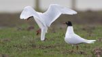 A really nice looking adult winter plumage Mediterranean gull on the top lodge with 30+ black-headed gulls. All foraging in the field next to the sub station thing.