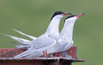Pair of Common Tern on the top lodge. One with a ring on the right leg.
