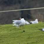 3,30pm : Pair of Mediterranean gulls with a flock of 47 black-headed gulls foraging in the field off Bentley Hall Rd ..I assume these are the same returning pair as one has the leg ring above the right knee.. Couldn't get close enough to get any details. Will keep trying