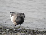 Along the sea wall by the golf course were 5 "hrota" Brent Geese and a few Turnstones. With a high tide stated to be only around 7.6m there appeared to be little point in waiting to see what took refuge on the small rocky islet opposite the golf club, the sea only briefly isolated it. Just a few Oystercatchers and Turnstones took shelter there for a while.