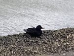 West Kirby Marine Lake (after an almost bird less 7am trip to Hilbre due to wind: Two Red-breasted merganser (m+f), Greater Scaup, 32 Brent Geese, Swallow over and this Common Scoter, presumably ill as I'm stood 3ft away. Rang RSPCA and left a message.