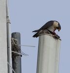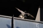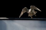 Both adults on view this afternoon firstly around the city tower, female perched up whilst the male was flying around being harassed by a few gulls. Then again later on both perched on the cis tower.