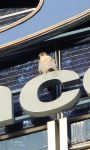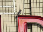 Female was sat 2/3 of the way up the side of the Premier Inn nearest the river. At the same time the male was on the Arndale signage but later flew across towards the Irwell and seemed to carry on past Premier Inn towards Salford.