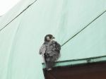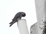 A pair of Peregrines were on the CIS tower today. I was not able to confirm the identity of the individual birds. I would dearly love to know which male is with the female. I have heard 3 stories about what happened to last year's male which was taken into care. Was it released, did it escape? Sadly I was in hospital so could not monitor the situation.