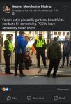 A late post after being reminded by Ians, I could hear 2 Peregrines interacting at roof level near to portland Street on Thursday, they then both flew off in opposite directions, going off size the female headed towards the townhall and the male circled off up high.