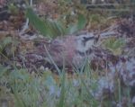 I set off, feeling confident that the bird was likely to stick in view of the poor weather. On reaching the site there were about 40 observers present and the id was no longer in doubt. After some 15 minutes I hadnt managed a glimpse, though someone had seen its tail, then someone else saw a head. Finally I saw the head side on and noted the slender bill, black eye stripe, and whitish supercilium (both more pronounced than on the Fife bird of 2004). In view of the poor light I was quite pleased to be able to see these features as well as I did.