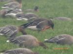A Red breasted Goose had turned up in Norfolk with a large quantity of Pink footed Geese in December. It didnt stay long in Norfolk and was relocated in North Lancashire in the Cockerham area. Myself and Steve B decided to have a go at seeing it and left Rochdale at 7am on a cool morning. We called at Fishmoor Reservoir, Blackburn to try to catch up with a couple of white winged gulls that had been seen there recently, but as it was still fairly dark we headed up to the Cockerham area. Lots of geese flying around was a truly great spectacle as the sun began rise, we checked a few of the large flocks out but could not see anything except Pink footed Geese. We headed down into the Thurham area and found a flock of around 300 Whooper Swans with 4 Bewick Swans also seen. A field also contained about 6 dodgy looking Canada Geese, after watching them we realised that they were not moving, then a man appeared and picked them up, they were decoys! A message said, Red breasted Goose just flown over Sand Villa near Cockerham. Off we went to try to connect, but on arrival, true to form, the bird had flown out onto the salt marsh! Now for some real birding as we spent a couple of hours sifting through the main flocks and finding: - 11 White fronted Geese (Russian) 2 Bean Geese (Tundra & Taiga) Barnacle Goose, lots of Curlew, 2 Buzzards. Great fun watching the geese push each other around whilst most of them just wanted to feed. We met up with Sarfraz & Paul, fellow Rossendale birders, who both needed Bean Goose. They managed to be put onto the Bean Geese by Rob Creek (GM Birder) well done Rob.