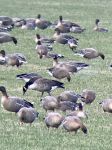 We then headed on, leading another birder, to Pilling Lane Ends where several fields held feeding flocks of Pink-footed Geese. We soon found the field with the most interesting flock in it though, to the north of Backsands Lane. The stand-out bird was an adult Red-breasted Goose which associated loosely with 23 Russian White-fronted Geese. The fields around here also contained large numbers of Curlew and Lapwings.