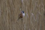 Called at a few places on the Fylde today, main spot being Fleetwood Marsh Nature Reserve in an attempt to see any of the four Bearded Tit that have been seen over the last few days. Just beyond the car park is a pool on the left hand side crossed by a sort of bridge and surrounded by a mall reed bed. Here we watched a male and female for around fifteen minutes, from the bridge. The male was very striking with his slate blue/grey head pattern standing out in the lovely sunshine.
