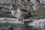 Ring-necked Duck - female back again and settled to roost amongst the Tufted Duck on north side of lake this evening. (Thanks to Copland Smith for the heads up)