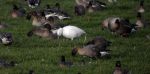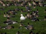 The Snow Goose, that has been in this general area since the 9th January, showed well this afternoon, albeit distantly, on Downholland Moss, amongst a couple of hundred Pink-footed Goose.