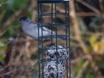 A male blackcap feeding on the fatballs in my flixton garden this morning.