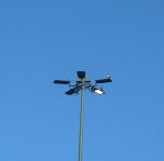 Two immature Cormorants resting on the very tall lights on the central reservation of the Mancunian Way less than 100 metres west of the Chester Road roundabout. Whilst they're often on the river a little further up by Regent Road this is the first time I recall seeing them on these lights myself and they're just surrounded by concrete and traffic!