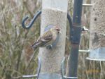 The large flock of goldfinch arrived again about 4.15pm landing in the trees then taking off again dozens of times as usual, however the numbers reduced and I noticed a sparrowhawk sat on the fence below the tree. The situation continued until 4.55 when the remaining 20+ birds dived into the bushes to roost. The sparrowhawk watched with interest, but at 5.00pm gave up and flew off.