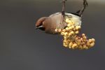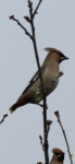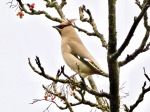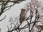 Spent an hour and a half in Hyde this morning prior to it starting raining. The flock of Waxwings initially was at the top of a tree some 30-40 yds away from the main road but they gradually came closer to the two trees mentioned below and from time to time dropped down to feed on the berries. They were quite skittish, sometimes flying off the berries when a bus or lorry drove past. The flock, say around 45 birds, all departed for 15 minutes when a Sparrowhawk flew overhead, although the birds returned thankfully. Great to see.