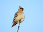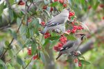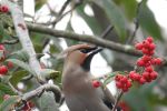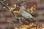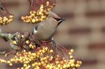 12 Waxwing still 09.35 coming to Cotoneaster at the end of Capenhurst Close, Wythenshawe. Right leg colour ring combinations noted : blue over red & yellow over blue