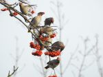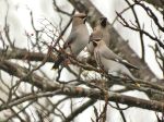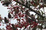 11 Waxwings still at Whaley Range in gardens behind Jerk Junction occasionally flying down from tall trees to feed on Sorbus berries at 2.15pm. Still plenty of berries left.