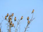 11 waxwings in tall trees behind Jerk Junction, Whalley Range this morning (I left just before 11) Mostly high in the trees preening and some flitting Small car park was a good place to spot