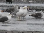 2 huge " Argentatus" Herring Gulls were on the flash and were seen to harass and chase the smaller Lesser Black Backs mercilessly.
