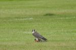 Peregrine juvenile, red ring 5H on right leg (see photo) at the playing fields (present when I arrived) put on a fantastic performance for 40 minutes before flying east over Princess Road into Withington at 12.46. Caught a Woodpigeon, plucked it on the ground and 'toyed' with the Crows.