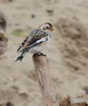 Next to the boating pool there's a little fence, and the Snow Bunting (m) was hanging around there with Skylarks; flew off but returned to this favoured spot