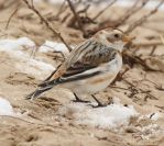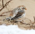 My intention here was to try and find the snow bunting, and with details being vague, it was going to be like finding a needle in a haystack! Where do I start??? Fortunately, after 10 minutes, it looked like two other guys were also out to look for it and found it- so I made a bee line to where they were and my instincts were spot on!!!! He was on a pile of wood by the side of the path!!!