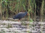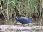 Did the 500 mile round trip with my best birding mate & we saw the Western Purple Swamphen immediately on arrival at its favoured pool, 'South Girder' behind South Hide. This Frankenstein's Moorhen showed well on the back edge of the lagoon in the sunshine giving a few Mallards the frights of their lives as it appeared behind them out of the reeds, very comical! On the same lagoon a Water Rail showed on the reed edge too and a Bearded Tit skimmed over the reeds. From the coastpath viewpoint we watched Spotted Redshank, Bar and Black-tailed Godwits, Avocets and a few Little Gulls on the lagoons. Further round two Stone Curlews showed well on the fields specially managed for them. Nearby a Hobby flew over. We had a good explore of the reserve and added some good non-bird sightings too (see other thread). Great fun in the sun and well worth the effort (just don't mention the M6 ).