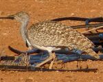 There are several known sites for Houbara, though there are Houbara zona protection signs all over the place, so they are pretty widespread. You should target HBs at the start and at the end of the day, although one did show well at the El Cotillo Plains from a couple of hours after dawn for two hours till 11am. I suppose it depends on where you are based as to where you want to hit first. If staying in the south at Costa Calma it's possible to walk the plains see HB, CCC's (Cream-coloured Courser's) & Black-bellied Sandgrouse etc without the need for a car. I also saw 3 HB over two visits (dawn and dusk) at Rosa de los Negrines near La Oliva, which is the most central site and also handy for the Chat at the Fimapaire Valley ( the other side of La Oliva).