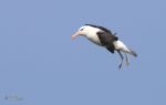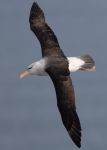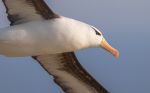 The Black-browed Albatross put on a great show flying around the cliffs for a while, including a fly-past just 20 feet above my head, before settling on the cliffs just out of sight.