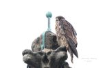 Short visit to Rochdale this morning, clear view of juvenile perching very high up on clock tower, male just beneath. He circled the clock tower a few times with prey but juvenile not taking the bait.