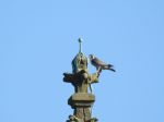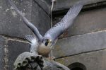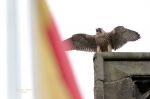 Both resident birds briefly on the Twon Hall Tower before calling and flying together around the Town Hall. They then both left the area and headed in different directions.