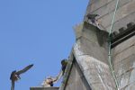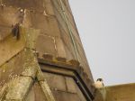 9.00am Peregrine at top of spire on Town Hall (not a usual perch) for local peregrines. 9.45am Peregrine perched at same level as nest tray but on opposite side of building. I do not know if it was the same bird a at 9.00am.