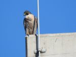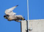 Peregrine falcon only seen once this week, just Monday whilst on my way to work in its usual spot on the chimney tower in Premier park. Whilst driving into work yesterday, Thursday, a great spotted woodpecker was actually flying along directly above my car & carried on in the direction of the Trafford Centre as I turned in to work. 2 pied wagtails feeding on 3rd avenue yesterday also.