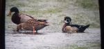 Good to see the wood duck still there in the pouring rain. Also a redhead goosander and a heron on the big lake, with most of the mallards lurking under shelter.