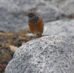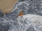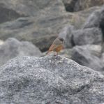 The bird was settled, and flitting/ foraging amongst the large boulders yards from the surf, and keeping company with a robin and two rock pipits.