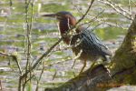 - Green Heron (Lifer) A brilliantl looking bird that was partly hidden on arrival but showed well eventually before blending back into obscurity at the back of the pond. We witnessed it stealthily climbing the ponds overhanging branches and then lean down and catch a Perch in lightning speed, which it had actually speared with the bill's upper mandible. We got lucky yesterday as a birder present told us that on Saturday it had spent all day hidden in the reeds so well worth the long journey.