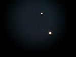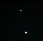It was absolutely brilliant tonight about 4.40pm,looking fairly low in the sky in a south westerly direction. With my telescope it was possible to clearly see the ring around Saturn,and 4 of Jupiter's moons were clearly visible as well. What an amazing sight,recommend anyone to have a look tomorrow if it's clear shortly after dusk. By 5.15 they were still visible but due to the change in angle I couldn't make out the ring around Saturn which was clearly visible half an hour earlier.