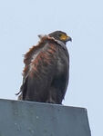 Harris's Hawk in Altrincham - perched in tall fir tree near John Leigh Park on Sunday evening (last seen here in 2021) - Gull and 2 Crows not happy it being there!