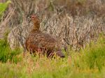 1 Red Grouse seen from the car in a grass field right where all the Heather moors end.
