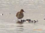 The interesting Aythya duck was still present and beat both Canada Goose and farmyard duck to the bread I was throwing out, at one point taking bread from my hand, hmmm! In terms of its identification it certainly resembles 1.w. Lesser Scaup. With such close quarters views we got a close look at the bill which was rather narrow and had a relitively broad nail, features which don't add up to the classic definition but features which may be more variable than I realised (or it's a hybrid!). Also on the lake were a Little Grebe, 4 Pochards and an Oystercatcher.