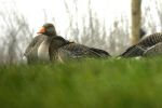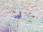 Walking 30m up Bents Lane I found the Greylag Geese on the top of a ridge grazing in the field but no Bean Geese were in view, however other geese were over the brow of the hill out of sight. Again I told the other birder but again he ignored this! I carried on down the lane and came across another birder who too insisted it was always the floods that the geese were on when I mentioned the flock in the field, and at this point I gave up trying to help them!! Carrying on I found a gap in the hedge through which I could see more of the flock in the field and there in the middle were at least 2 Tundra Bean Geese The flock was close but wary so I got a few record shots and eventually returned to tell the others that they were indeed on the fields. But they had both given up & left without seeing the birds, ah well, I tried!