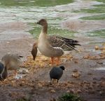 Three Tundra Bean Geese still present at Whitmore, Staffordshire this morning. In flooded fields to the west of Bent Lane which runs south out of the village. Initially they weren't 'on site.' They have been associating with a flock of Greylags and after ten minutes or so they all flew over but didn't land, instead carrying on over the hill beyond. Thankfully, twenty minutes or so later the three Bean Geese returned and dropped in, albeit in the field behind the floods and a bit too distant for decent photos. Two record shots attached.