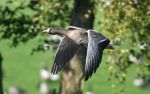 Lunchtime today a presumed feral single Barnacle Goose on the mere in with the Greylags, Canadas and Emden Geese. Possibly on the flanks had hints of been a Barnacle x Greylag hybrid.