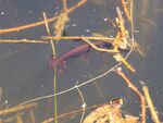 A really fascinating session at Brown Low pond (private site) featured 8 - 10 smooth newts, including a large, gaudy male, all on the look out for food at the surface. The target was the many ovipositing pairs of azure and large red damsels. One finally got lucky when a female azure became trapped by surface tension and was pulled under. I also noticed a large nymph (emperor?) trying to avoid detection, although it was almost as big as the smaller newts. I've never seen a dragonfly nymph below the surface before, so this was very much a ' T.V. documentary' moment. One male broad-bodied chaser also by the edge. Butterflies included 3/4 large skippers and a small copper. A walk between Smithy Ln and Gird Ln had further large skippers (9) in good number, plus singles of small heath and common blue.