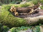 The advantages of leaving felled timber in situ already obvious from these nice clumps of Shaggy Scalycap Philotia squarrosa already developed on the felled Beech I mentioned last month. A few tiny parachute or similar mushrooms also growing in the same scar. Neither of these were present when the tree was standing.