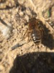 I have attached an image of a Mining Bee which I have identified as an Early Mining Bee (Andrena haemorrhoa), but I am happy to be corrected by anyone more expert than myself. The abdomen isnt ginger enough for a Tawny Mining Bee. The pollen baskets were heaving, as the bee took the protein source into its burrow.