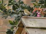 - Willow Warbler in nextdoor neighbours garden early morning, doing a spot of flycatching from their shed roof
