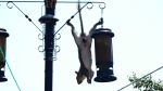 The 'squirrel buster' feeders are no longer effective as they've developed a manoeuvre to access the peanuts by hanging upside down - quite comical as they look like they've been hung out to dry! (see pic)
