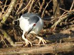 Had an appointment cancelled at last minute .. gave me an opportunity to nip up to Ossett for these B-C Night Herons. Left at 11.00 hrs. From home I had the obvious option of M62 or M1 but decided on an extra 10 min more scenic route via Holmfirth ... when I left Stalybridge it just started to rain ... just before I hit the county border at Kirklees on the Isle of Skye road (A635) it really had a blow on and had started to snow !! "Dear Me" I thought .... or words to that effect !! Got there in good time and began to limber up ... ready for the assault on the bowser that Mr Ousey mentioned ..... me being built more for comfort than speed and the realisation that I've had too many birthdays didn't make for good viewing ! Both birds were present but were huddled up in deep cover in the hawthorns at the back of the willows and took a bit of picking out .... fortunately at 14.30 one flew down onto the bank and proceeded to do a bit of hunting/fishing. Around a dozen other birders present .... some had left disappointed before the bird flew down but others were just arriving as I left at 15.15 hrs. Also had a female Sparrowhawk being chased by the male as I walked back to car-park.